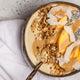 Viele Menschen haben morgens nicht so viel Zeit ihren Porridge am Herd oder mit heißem Wasser zuzubereiten (auch wenn es wirklich nicht lange dauert). Eine Möglichkeit, dies zu umgehen, sind die sogenannten Overnight Oats. Wenn man die Flocken über Nacht in Flüssigkeit aufweicht, werden sie ebenso lecker wie frisch gemacht am Morgen. Man nimmt eine Schale und füllt sie mit Porridge, bedeckt das Ganze mit Flüssigkeit – so hat man morgens einen leckeren Porridge, ganz ohne Stress. Für noch bessere Overnight Oats gibt man eine Prise Salz, Zimt und eventuell einen Schuss Erdnussbutter (organic) hinzu.