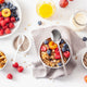 Ein gesundes Müsli sollte immer mit frischem Obst wie Beeren und Früchten kombiniert werden. Diese enthalten wichtige Ballaststoffe und Vitamine. So versorgst du deinen Körper bereits am Morgen mit einer ausreichenden Menge an Vitamin C. Beeren enthalten besonders viele Antioxidantien und eine geringe Menge an Fruchtzucker. Den Kombinationsmöglichkeiten sind keine Grenzen gesetzt.