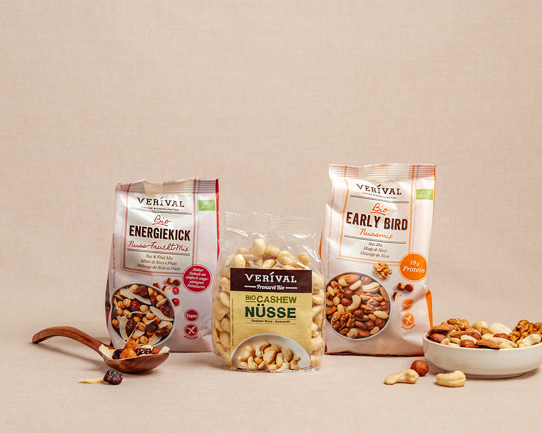 Organic nuts and nut mixes as a topping for your breakfast or as a healthy snack