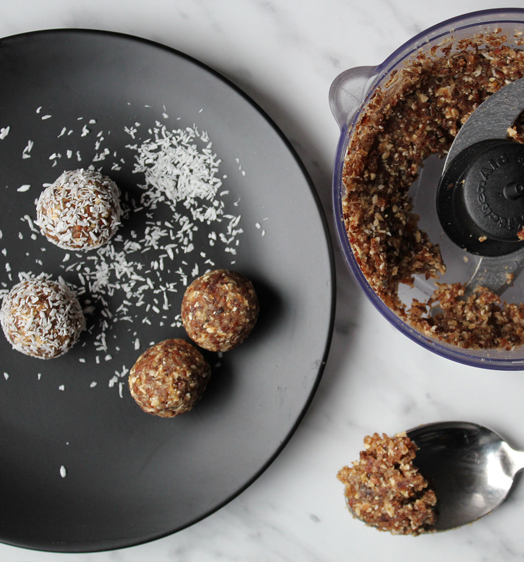 In addition to muesli bars, energy balls are also a quick and healthy snack. Simply mix dates with nuts and flakes of your choice and blend everything in a blender. Then shape the mixture into balls and roll them in coconut flakes. Your homemade energy balls are ready without sugar!