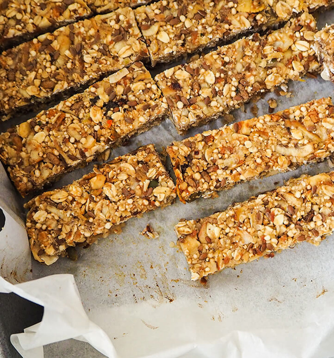 Homemade muesli bars are a great way to have a healthy and delicious snack. With handmade bars, you can control how much sugar ends up in the product – or you can bake bars that are completely sugar-free. Various flakes such as oats are ideal as a base. The best thing to use to sweeten your healthy bars is dates, for example. Nuts also provide you with additional satiety and important nutrients.