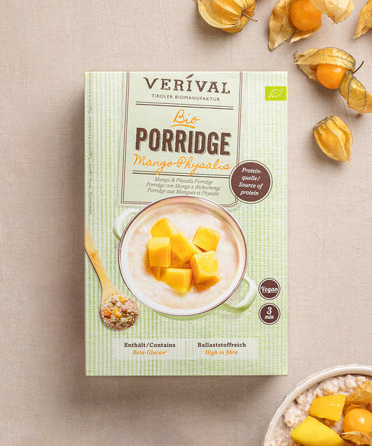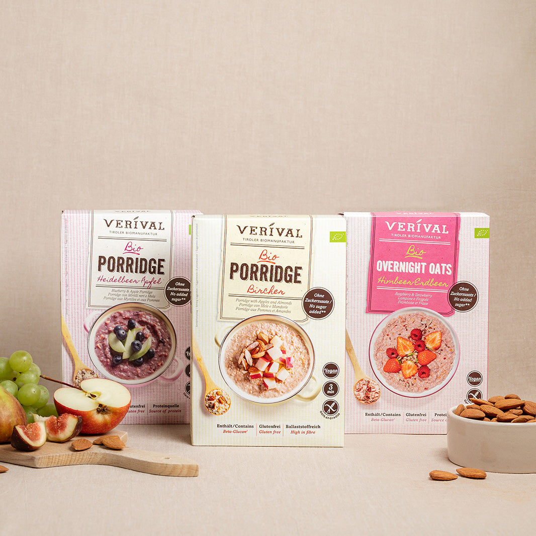 Porridge contains many important nutrients, vitamins and minerals. For even better nutritional values and a great taste experience, we add delicious organic ingredients to our porridge mixtures. Each Verival organic porridge mixture is unique and contains only the ingredients that provide the body with additional important nutrients.