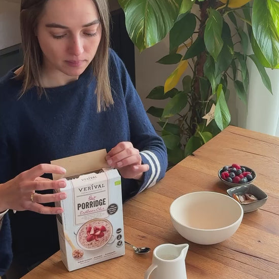 A healthy, warm breakfast made easy: 100g of porridge provides you with 31% of your daily fibre requirement, 20% of your protein needs and all essential amino acids. And it's all plant-based and with no added sugars.