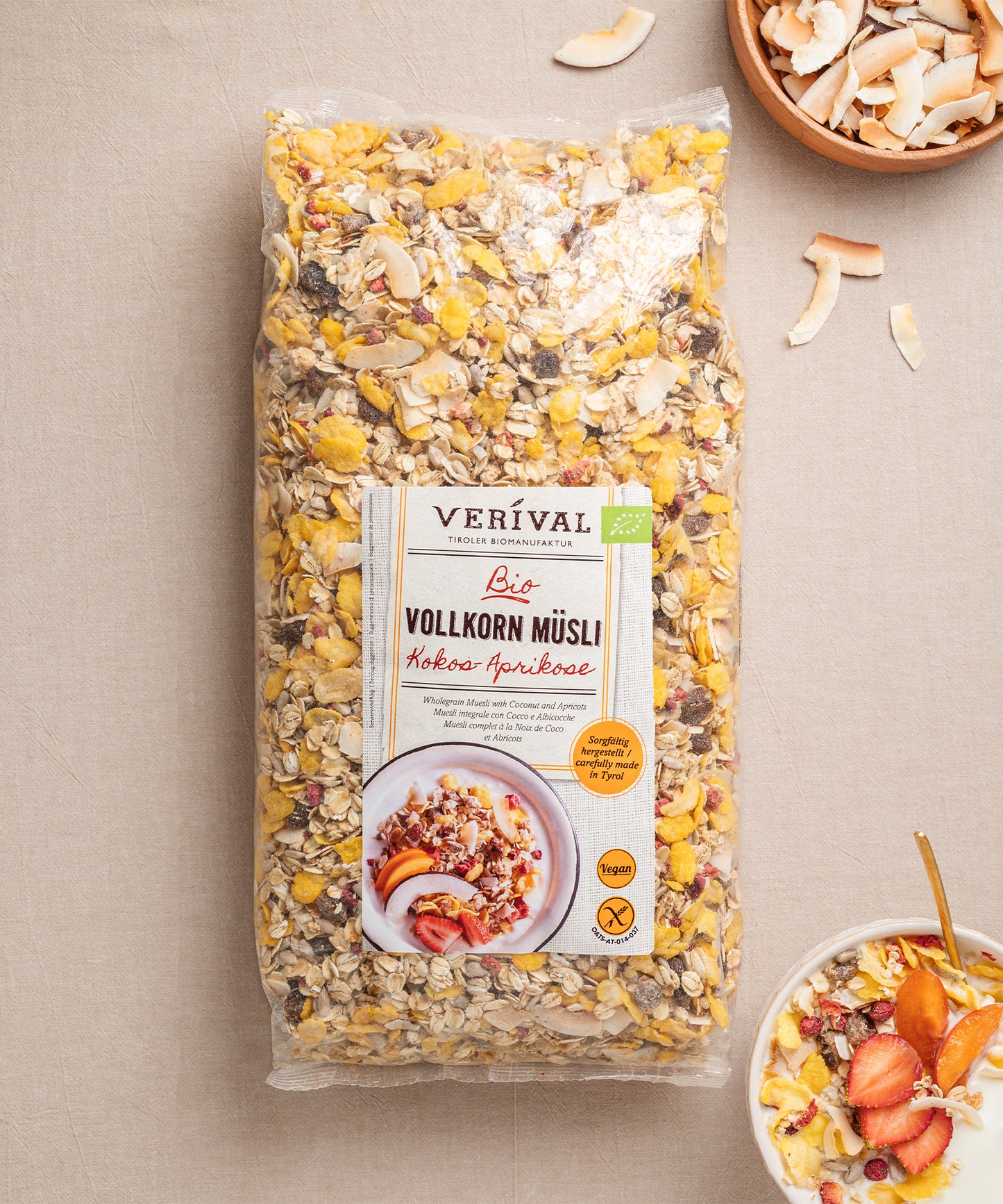 Our high-quality organic ingredients are made into delicious organic porridges and granolas in our own production in Langkampfen in Tyrol, mueslis & more are further processed and sent to you directly from Tyrol.