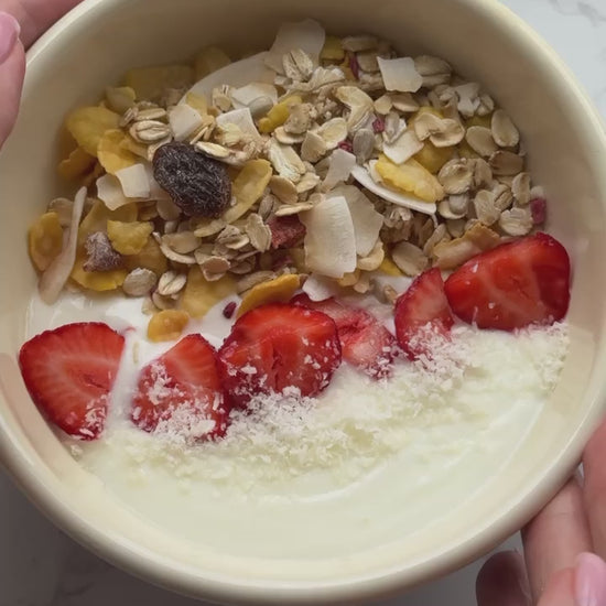 Pour fresh milk or plant-based drink over muesli, mix with yoghurt or use as a topping.