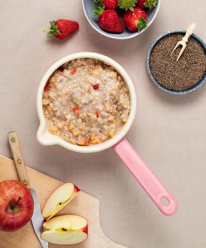 The long handle and large spout are perfect if you want to pour your porridge into a bowl before eating.