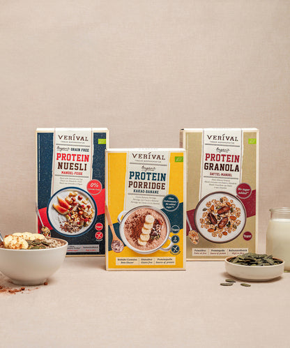 Do you like to start the day with a healthy breakfast? Our sports breakfast package is the perfect nutrition support for you. All three sports products are high in healthy proteins, replenish your energy stores and are also vegan.
