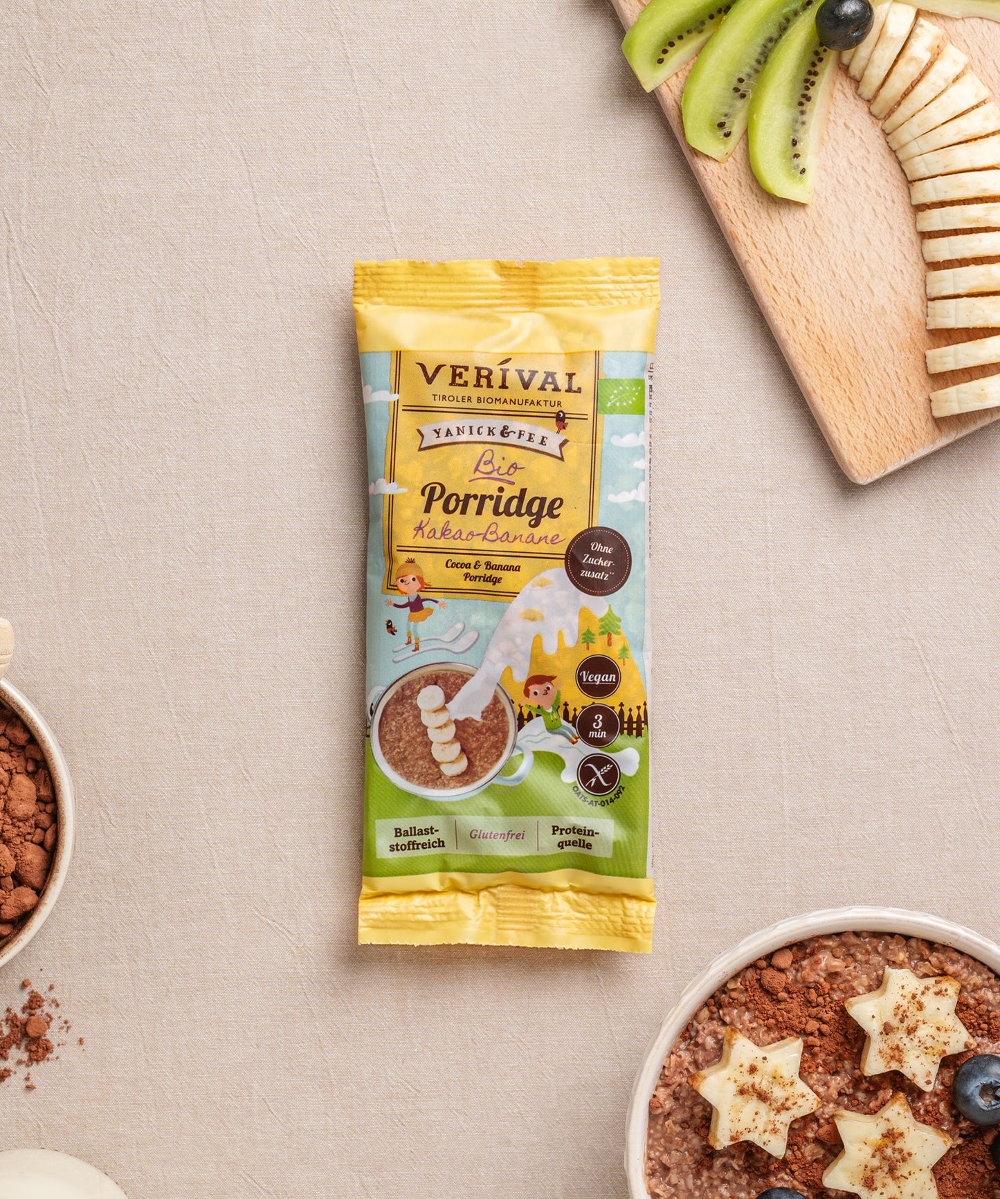 Le petit déjeuner énergétique quotidien pour les enfants : une portion de porridge apporte aux enfants dès le matin de précieuses fibres, des protéines et tous les acides aminés essentiels. Et ce, de manière purement végétale, sans sucre ajouté et sans gluten.
