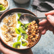 I condimenti sani hanno il vantaggio di rendere più piccante un piatto e di completarlo meravigliosamente, oltre a fornire ulteriori nutrienti. Noci , frutta o semi sono l'aggiunta perfetta al porridge, al muesli o allo yogurt.