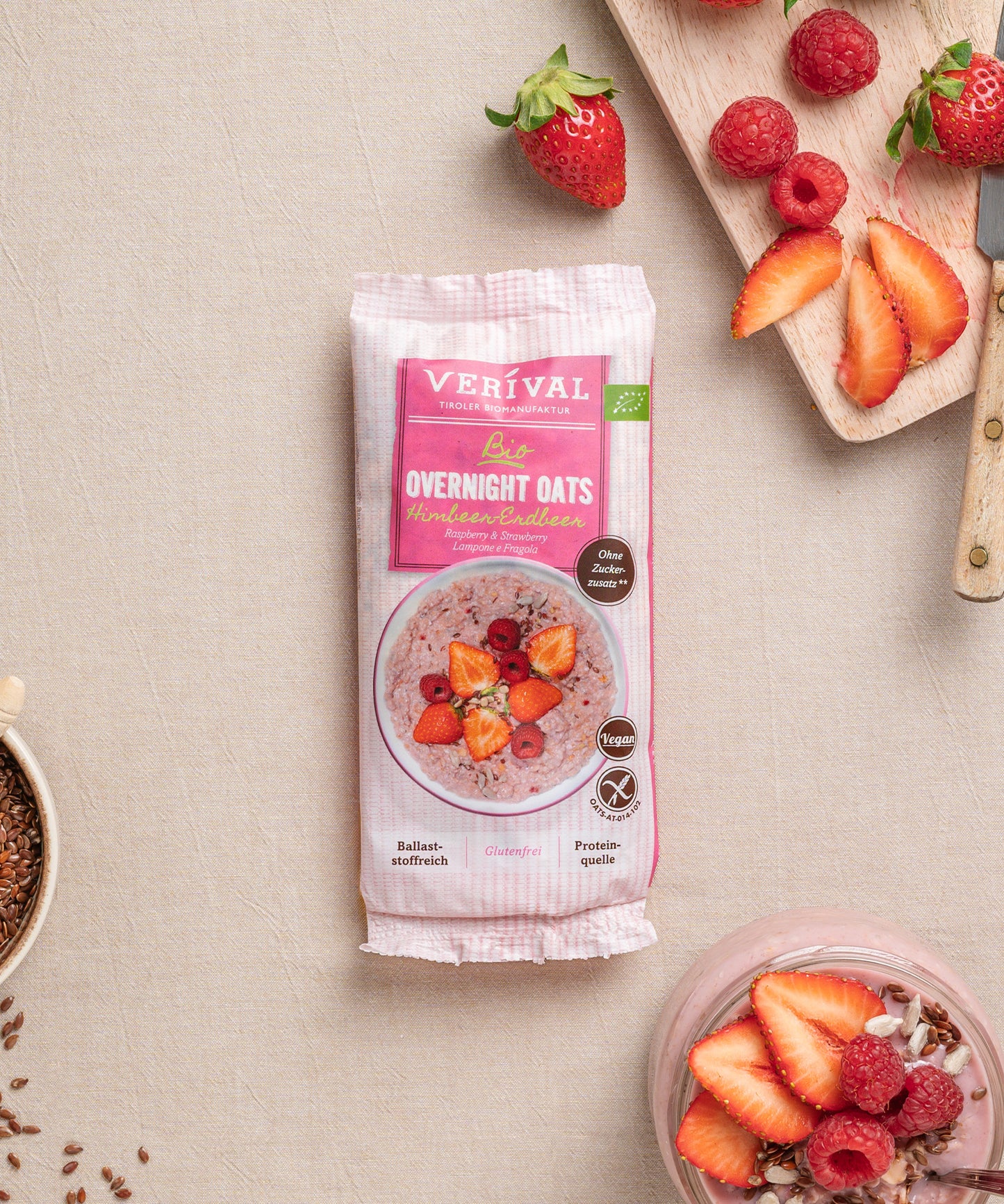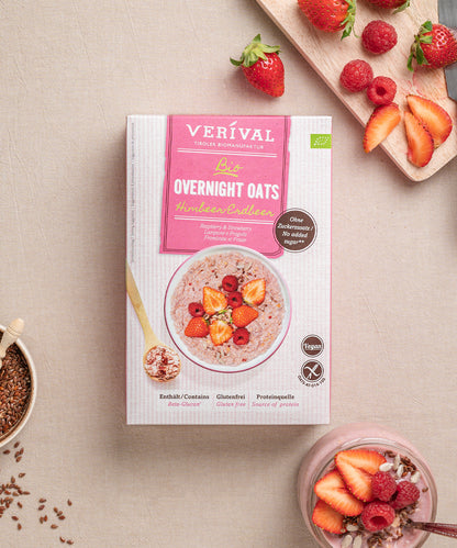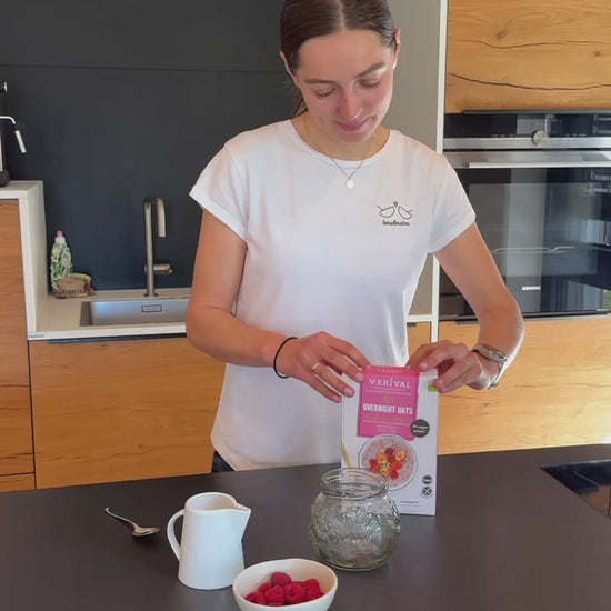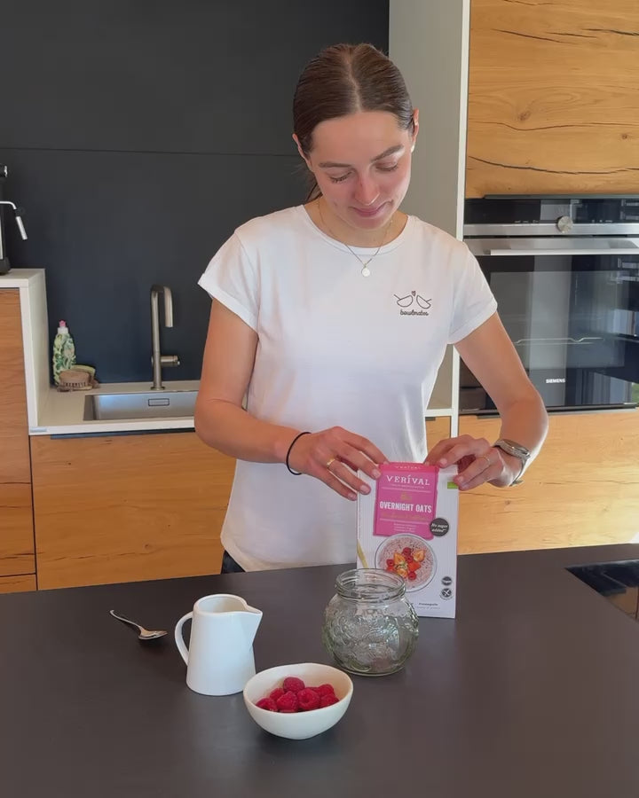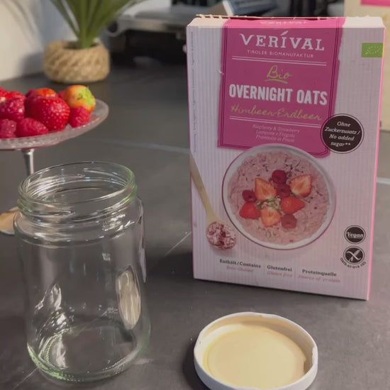 Sei alla ricerca di una colazione semplice e sana? Allora la nostra overnight oats alla frutta è la colazione giusta per te! L'overnight oats è particolarmente veloce da preparare. Basta mescolare 50 g di avena per la notte con circa 120 ml di latte freddo o bevanda a base vegetale e riporre l'avena in frigorifero per tutta la notte. Puoi facilmente utilizzare frutta fresca, noci o semi come guarnizione per la tua avena notturna.