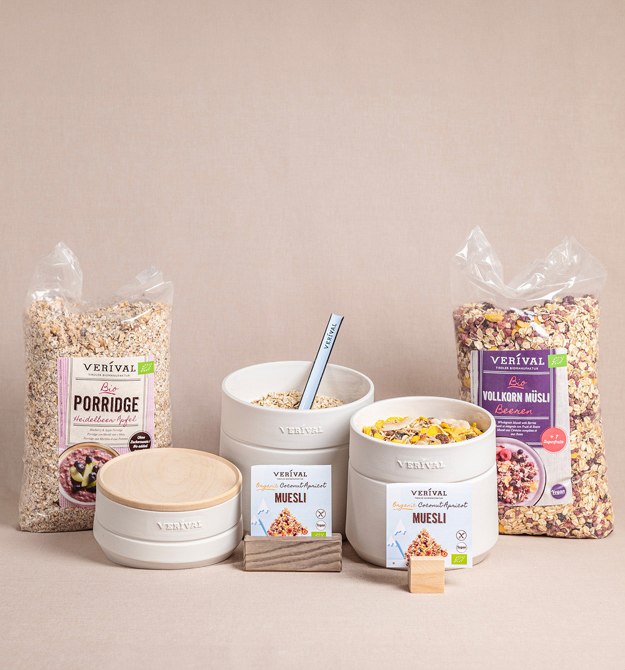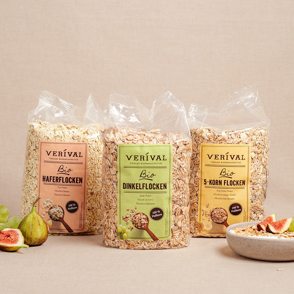 Bei Verival findest du eine große Auswahl an unterschiedlichen Bio Frühstücksprodukten. Dazu zählt Bio Porridge, Bio Granola, Bio Müsli, Bio Protein Frühstück, Bio Kinder Frühstück und Bio Snacks.