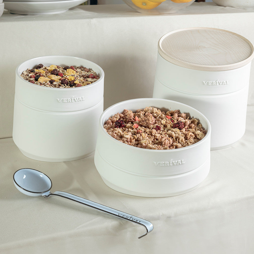 VERIVAL bietet Ihnen auch vielfältige Möglichkeiten, Ihre Frühstücksprodukte ansprechend zu präsentieren. Von hochwertigen und hygienischen Keramikschüsseln, über Schöpflöffel, diverse Schüsseln und Tassen haben wir alles bei uns im Sortiment. Zusätzlich bieten wir auch Beschilderungen für die einzelnen Produkte an, auf denen die Produktnamen sowie die Allergene verzeichnet sind.