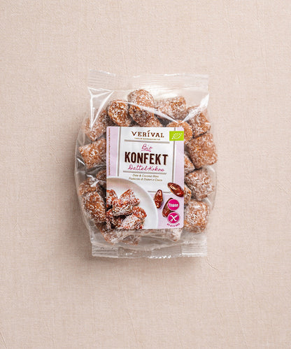 Unser Dattelkonfekt ist die perfekte gesunde Alternative zu herkömmlichen Süßigkeiten. Die verwendeten Datteln sind reich an Ballaststoffen, Vitaminen und Mineralstoffen, während die Kokosraspeln gesunde Fette liefern.