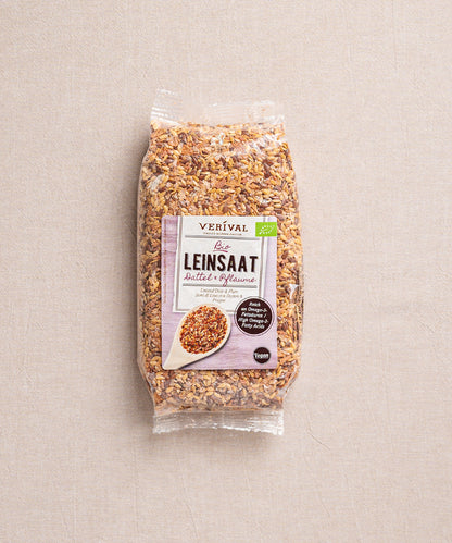 Unsere Leinsaat Dattel-Pflaume Mischung vereint hochwertige Zutaten wie goldene und braune Leinsaat, Weizenkleie sowie Dattel- und Pflaumengranulat zu einem köstlichen und nahrhaften Topping für deine Müslis und Porridges.