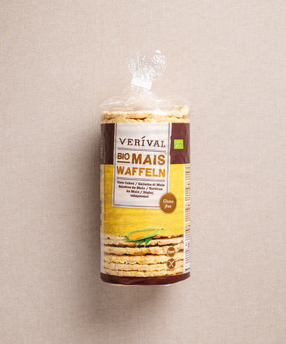 Die leicht gewellten und besonders knusprigen Maiswaffeln sind glutenfrei und ideal für den kleinen Hunger zwischendurch.